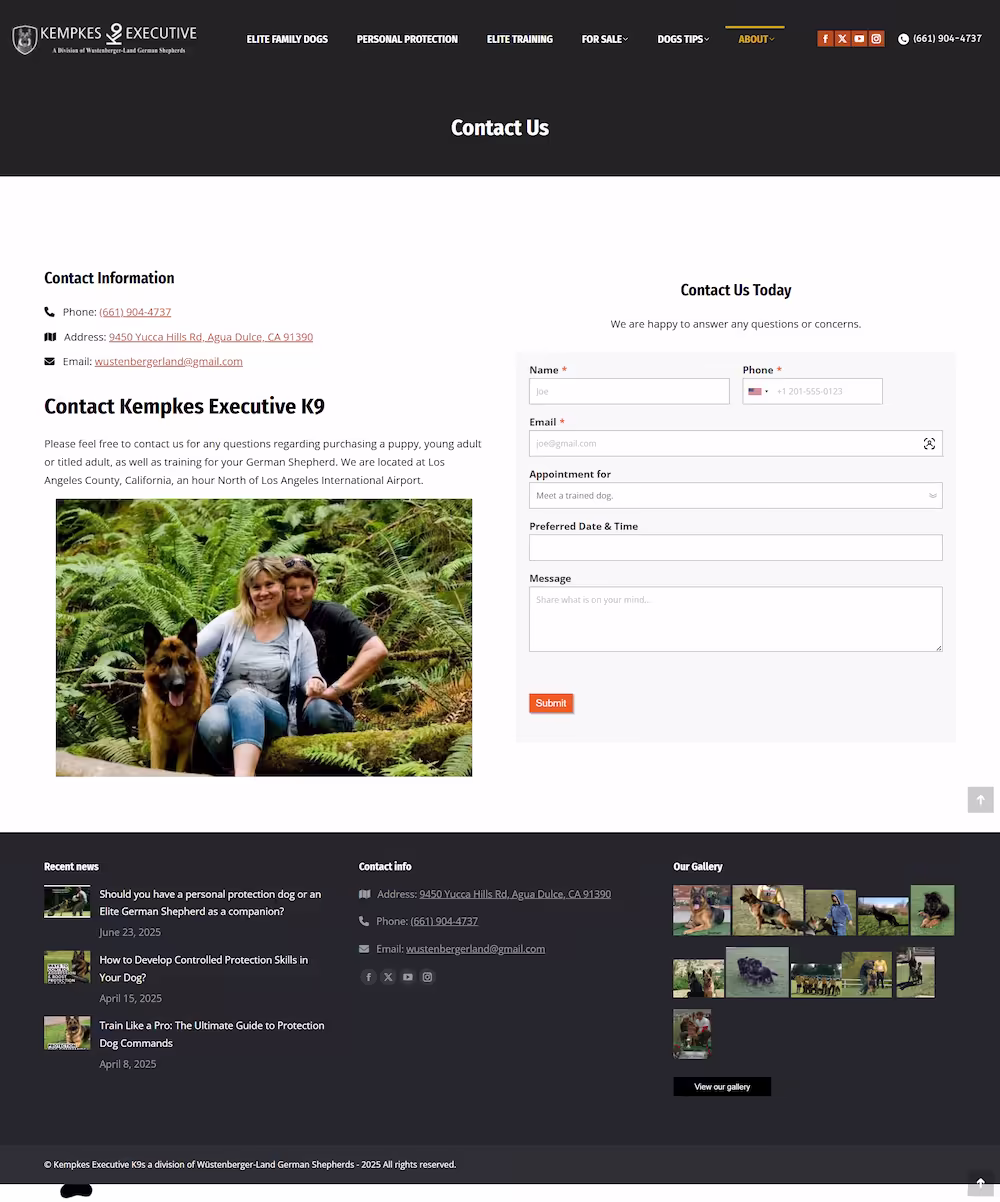 kempkes executive k9s, over 30 years experience.